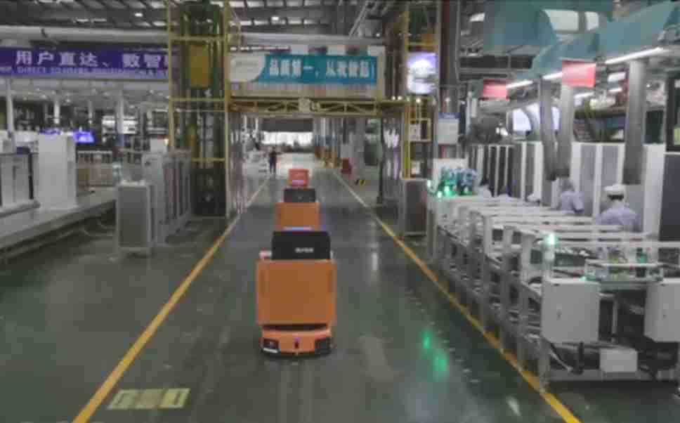 为车载冰箱物流配送打造的智能解决方案,,包含产中物流通过潜伏举升AMR搬运至线边,,,产后成品物流智能仓储,,,流程包含产中物流智能齐套入库,,线边安灯叫料AMR智能配送至线边,,,,成品入库、、、、出库,,,通过无人堆高车机器人,,,,智能仓储管理替代人工作业管理,,,,实现更高存储、、、更高效率、、、、更具柔性化的解决方案。。。